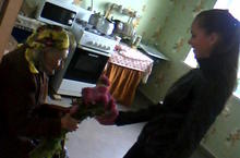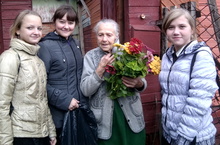 Поздравление ветерана Великой Отечественной войны Хамкиной А.К. учащимися 9 класса с днем пожилых людей 06.10.2013