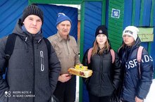 Обучающиеся 8 класса поздравили ветерана педагогического труда Солдатова В. И. с наступающим праздником 23 февраля.