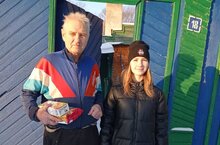 Обучающиеся 8 класса поздравили ветерана, бывшего учителя физической културы Солдатова В. И. c наступающим Новым годом.