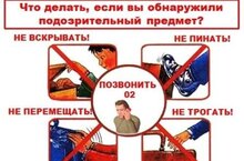 Задача родителей и педагогов - объяснить детям, что необходимо сообщать взрослым или сотрудникам полиции: об обнаруженных на улице, о бесхозных вещах, о подозрительных предметах в общественном транспорте, предметах в подъезде, дома или в детском саду. Объясните детям, что во всех перечисленных случаях необходимо: а) не трогать, не вскрывать, не передвигать находку; б) отойти на безопасное расстояние; в) сообщить о находке взрослому.