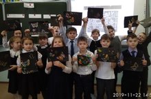 На открытом занятии по внеурочной деятельности "Веселые краски", руководитель Володина Л.Н., дети познакомились с новой техникой рисования – граттаж. Способ выполнения рисунка путем процарапывания пером или острым предметом бумаги или картона, залитых тушью. Другое название-воскография. У ребят получились очень интересные творческие работы.