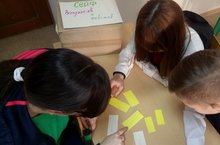 В 9 Б классе классный руководитель Лизунина Э.Х. провела тренинг «Моя безопасность в сети интернет». Всем учащимся на входе классный руководитель раздала «Билет на вход» (это разрезанные листки разных цветов, на которых написаны правила безопасного поведения в Интернете, учащимся ставится задача – сгруппироваться по цвету и собрать предложение из разрезанных листков бумаги). У каждой группы получилось одно из правил безопасности в интернете, таким образом ребята сделали вывод и узнали тему тренинга. В классе находился сейф "вопросов и ответов" (в любое время тренинга можно было написать вопрос по теме и бросить его в сейф, который будет открыт через два дня после окончания тренинга). Далее ребятам было предложено посидеть на стуле «Мечтателя» (предложить самые фантастические идеи о том, что для человека Интернет стал безопасным), на стуле «Реалиста», где учащиеся разыграли о том, кто как ведет себя в интернете и что может с ними произойти, и на стуле «Критика» ребята разрабатывали правила поведения в сети Интернет, используя опорные слова.