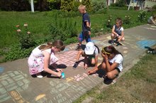 " Мин тормышны яратам!" исеме астында асфальтта рәсем конкурсы үткәрелде. Отрядлар тормышка мәхәббәт турында акбур белән рәсемнәр ясадылар. 3 D рәсеме иң креатив дип танылды, аның белән балалар үзенчәлекле фотосурәткә дә төштеләр.