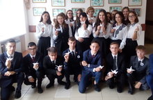 С целью формирования у учащихся активной гражданской позиции, приобщения их к делу борьбы за мир, воспитания патриотизма и гуманистического отношения к возникающим проблемам человечества в 10-11 кл. был проведен Урок Мира. На занятие ребята подготовили информацию об окончании второй мировой войны, вспомнили памятные даты в истории нашей страны и имена юных борцов за мир, чье выдающееся мужество стало для всех образцом борьбы за мир и жизнь: Таня Савичева, Анна Франк, Садако Сасаки, Саманта Смит. Выступления классного руководителя 11 кл. Кулагиной М.В. и учащихся: Гайнутдинова Т., Глониной Я., Крупиной А., Ушкова Я., Редковой А., Мухаметзянова А. - сопровождались показом интересной презентации. В заключение классного часа в русле мирного созидания Курбанова А., ученица 11 кл., провела мастер-класс для ребят по изготовлению бумажного журавлика как символа мира. В память о юных борцах за мир учащиеся 10-11 кл. приняли активное участие в этой миротворческой акции.