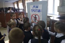 Сегодня учащиеся 2 «Б» класса вместе с классным руководителем Эскаевой С.О. провели акцию "Вместе против террора", в ходе которой рассказывали о мерах противодействия терроризму, раздавали памятки безопасности. Это первая акция ребят, но они с ней хорошо справились.