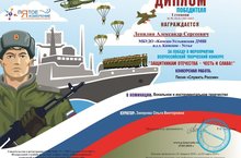 Поздравляем Лепилина Александра, обучающегося МБУДО «Камско-Устьинская ДМШ», победителя Всероссийского творческого конкурса «Защитникам Отечества – честь и слава!». Конкурсная работа песня «Служить России». Номинация "Вокальное и инструментальное творчество". Руководитель Закирова О.В.