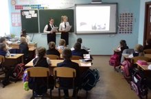 Сегодня в 1-х классах Затонской СОШ прошёл классный час на тему" История школы", который провели ученицы 7 А класса школьного актива «Океан». Первоклассники узнали историю развития школы. Активисты презентовали новое название школы, рассказали об Муравьеве В.П., чьё имя носит наша школа. В заключении, ребята спели гимн школы!