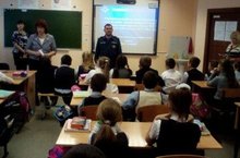 17.10.2017 года ученики 3 А, 3 Б, и 4 классов присутствовали на встрече с представителями ГИМС. Им была показана презентация, из которой ребята узнали при какой толщине опасно выходить на лёд, что нужно делать, если кто-то оказался в «ледяной» опасности, как себя надо вести на воде и первом ледоставе.