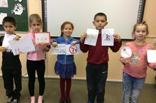 На каникулах второклассники, прежде чем пойти на прогулку, встретились в школе, чтобы провести КВН "Правила дорожного движения". Аглиуллина И. Ш. разделила ребят на две команды. Все участвовали в конкурсах, выполняли задания. Выяснилось, что ребята очень хорошо знают правила дорожного движения, правильно решают дорожные задачи. В конце провели конкурс рисунков и пошли довольные на улицу.
