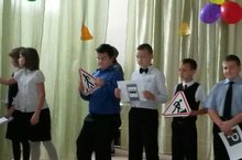 Учащимися 8 класса (кл рук. Аскарова И.В.), вместе с отрядом ЮИД (рук.Володина Л.Н.), для младших школьников было показано театрализованное представление "Весёлый Светофор". Сказачные герои, Светофор и инспектор ГБДД, напомнили детям о правилах дорожного движения. Загадывали загадки, пели песни и в конце ребята дали обещание, что ни когда не нарушат правил ДД.