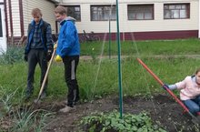 На пришкольном участке продолжают хорошо трудиться ребята 8, 9 классов, классные руководители Кулагина М. В., Зарифуллина З.Х. Как важно в подростковом возрасте воспитывать любовь к умственной и трудовой деятельности. Как сказал чешский педагог Ж.Ж. Руссо (1712-1778): "Ребенок должен работать как крестьянин, а думать, как философ!" Именно так излишки сил и психологический напряг этого возраста не даст ребенку увлечься негативными привычками. Именно так мы сможем воспитать в детях уважение к труженикам и общественную обязанность сохранять красоту и порядок вокруг.