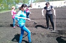 Начались работы на пришкольном участке: ребята формируют грядки и клумбы, высеивают семена, высаживают рассаду.