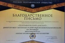 14 ноября на базе школы прошла Международная просветительская акция «Географический диктант», в которой приняли участие и 15 обучающихся и 5 учителей. По результатам акции школа получила благодарственное письмо за участие и организацию, от Всероссийского географического общества.
