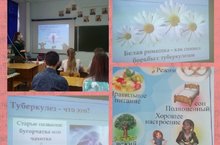 В 6 ом классе была проведена беседа «Туберкулёз – опасное заболевание.» Из беседы учащиеся узнали о причинах развития туберкулёза, его осложнениях и о профилактических мерах. А так же дети нарисовали плакаты о туберкулёзы «Остановим туберкулёза вместе», подготовили пословицы о здоровье человека.