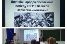 В рамках Года родных языков и народного единства в 8Б классе прошёл классный час на тему "Дружба народов обеспечила победу СССР в Великой Отечественной войне". Так на примере исторического события были рассмотрены такие качества, как сплоченность перед общим врагом, национальное братство, дружба народов, ребята сделали вывод, что именно тем и богата наша много национальная страна - своими людьми, которые вне зависимости от национальности, религии и языка всегда поставят дружеское плечо в опасных и сложных ситуациях! Так будем же беречь эту дружбу!