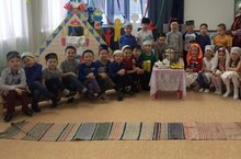 Сегодня воспитатели детского сада выступили перед детьми со сказкой "Куян кызы". В конце выступления сказочные персонажи провели с детьми гимнастику здоровья.
