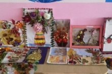 В фойе детского сада организовали выставку работ воспитанников индивидуально и совместно сделанных с родителями по теме "Осень, осень в гости просим". На первом этаже оформили выставку из работ младших групп, на втором старших групп.
