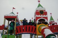 Едут бабушка и внучка.Учащиеся Араслановской школы с большим удовольствием покатались на ледовом катке и погуляли по парку.