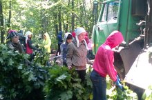В конце мая и в начале июня самая высокая концентрация витаминов - липы, дуба, орешника. Веточный корм для организма молодняка очень полезен. Его успешно используют во всех фермах, поэтому телята растут крепкими и здоровыми. Наш трудовой лагерь сегодня отправился на заготовку веточного корма. Сейчас - веткорм, а зимой это будет настоящий клад. Наши труженики, таким образом, уже заготовили 450 пар веников.