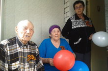 Без, 5 а сыйныфы укучылары, сыйныф җитәкчебез Алсу Фәритовна белән Бөек Ватан сугышы һәм хезмәт ветераны Гайнетдин бабай Каюмовның өенә барып бәйрәм белән котладык.