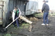 Затем, мы все дружно пошли убираться в огород, и плодотворно там поработали.