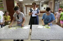 Был конкурс на самый лучший символ лагеря. Дети подготовили аппликации по теме, поделки, рисунки на асфальте.