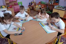 Работа детей с рабочими тетрадями по ПДД "Безопасная дорога"