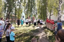 Сегодня дети нашего ДОУ с воспитателем Фединой С.П. приняли участие в мероприятии передачи флага Кайбицкого района.