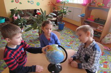 Цель: способствовать формированию представлений детей о том, что планета Земля – это громадный шар (большая часть земного шара покрыта водой – океанами и морями, кроме воды есть материки – твердая земля, суша, где живут люди); обобщению знаний о том, что на планете Земля обитает много живых существ, что всем им нужны чистая вода, чистый воздух, чистая земля; формированию представлений, что планета Земля сейчас в опасности; воспитывать любовь к природе, правильное с ней общение, желание изучать ее. -
