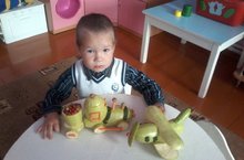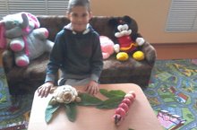 Воспитанник Огурцов Н. с поделкой из кабачков