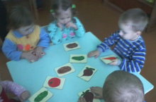 Дети сразу же пытаются назвать двух матрешек, но взрослый напоминает о том, что игрушки должны быть совсем одинаковые.