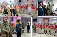 Сегодня нашу школу посетили поисковики из отряда "Россия". Они посетили школьный историко-краеведческий музей и встретились с юнармейцами.