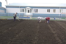 Балалар бакчасы һәм мәктәп коллективы хезмәткәрләре белән бергәләшеп түтәлләр ясадык, кишер, чөгендер, суган утырттык.