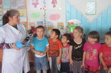Авылыбыз фельдшеры Воробьёва Оксана апалары балалар бакчасында еш була. Ул әти-әниләр, балалар белән төрле темаларга әңгәмәләр үткәрә. Бүген ул балаларга грипп, аны йоктырмау, дәвалану чаралары турында сөйләде. Балалар белән сюжетлы-рольле "Дарухананәдә" уенын уйнадылар.