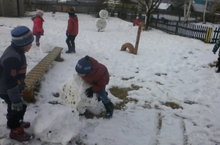 Балалар җепшек кардан Кар бабайлар ясадылар.