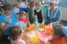 Әти-әниләр белән бергәләп балалар чыршылар ясадылар. "Кышкы урманга" беренчеләрдән булып Волков Богдан, Кисапов Николай,Тараканов Никита "чыршылар" утырттылар.
