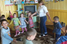 Кечкенәләр төркемендә тәрбияче Сунгатуллина Е.А. җырлы-биюле уеннар өйрәтә башлады.