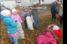 Балалар тәрбияче апалар белән бергә субботникка чыктылар.Алар апалардан калышмыйча,тырышып эшләделер.