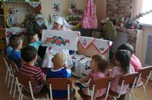 "Туган телләр һәм халыклар бердәмлеге елы" уңаеннан балалар татар милли бизәкләре белән таныштылар. Әбиемнең сандыгындагы милли әйберләрне (күлмәк, алъяпкыч, түбәтәй, яулык , калфак ) кызыксынып карадылар.Татар халык милли бизәк элементларын кулланып, үрнәк бенча эшләргә тырыштылар.