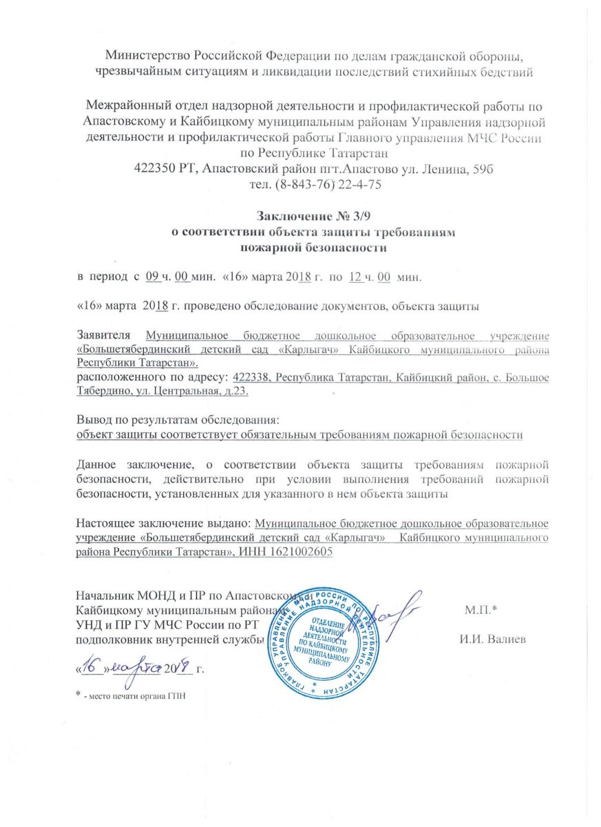 Заключение о соответствии объекта защиты требованиям пожарной безопасности