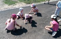 Рисование на асфальте – это не только весёлое занятие во время прогулки, это и творчество, и познание ребёнком окружающего мира. Ведь рисовать на асфальте мелками это совсем не то самое, что водить по бумаге карандашом или кисточкой. Здесь совсем другие ощущения. А ведь для дошкольников творчество – это не столько результат, сколько процесс.