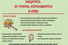 Вирусы передаются от больного человека к здоровому воздушно -капельным путем (при чихании, кашле), поэтому необходимо соблюдать расстояние не менее 1 метра от больных.Избегайте трогать руками глаза, нос или рот. Вирус гриппа и коронавирус распространяются этими путями.Надевайте маску или используйте другие подручные средства защиты, чтобы уменьшить риск заболевания.При кашле, чихании следует прикрывать рот и нос одноразовыми салфетками, которые после использования нужно выбрасывать.Избегая излишние поездки и посещения многолюдных мест, можно уменьшить риск заболевания.