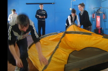 Команды ставят палатку. Оценивает учитель физкультуры Фасхутдинов Ильфак Талгатович