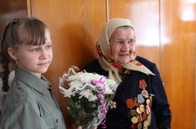 Несмотря на то, что до дня рождения еще есть время, гостей в ее доме не убывает. Наряду с вручением медали в честь 70-летия Великой Победы глава района Альберт Рахматуллин подарил ей и букет цветов.