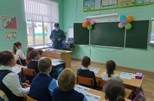 Янгын куркынычсызлыгы булеге хезмэткэре балалар белэн энгэмэ хэм эвакуация уткэрде.