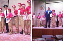 Хәрби хезмәткә чакырылучылар һәм аларның әти-әниләре белән традицион очрашуда безнең мәктәпнең яшь армиячеләр отряды катнашты.