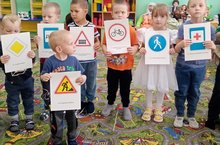Балаларны юл билгеләре белән таныштыру, аларны аера белергә өйрәтү, юл йөрү кагыйдәләре, светофор сигналлары турында белемнәрен ныгыту, балаларны игътибарлы булырга өйрәтүне дәвам итү, сөйләм телләрен үстерү максатыннан бакчабызда юл билгеләре белән таныштык.