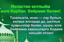 Корбан бәйрәмегез мөбәрәк булсын... Ходай саулык, сәламәтлек язсын, матур гына бергә-бергә дуслашып, кайгылар күрмичә, шатлык-куанычлар белән яшәргә насыйп итсен.