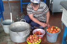 Мәктәптә бакчада өлгергән уңышны җыеп алу һәм урнаштыру эшләре бара.