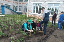 Мәктәп бакчасында кызу эш көннәре. Укучылыр мәктәп яны тәҗрибә участогына чәчәк үсентеләре утырттылар.